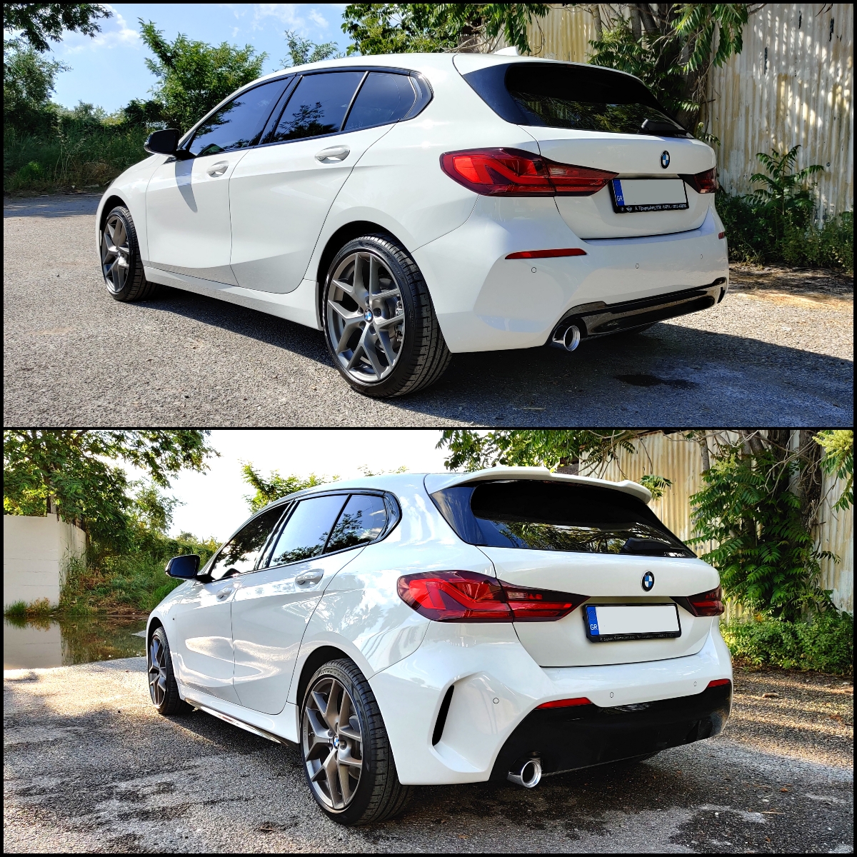 After a long search on web i found a complete set of used bumpers with all of their accessories in excellent condition like new.The next step was to find a set of sidekirts and the rear top spoiler so it happened.But it will be needed extra brackets and some more little parts that is compatible only with the M packet bumpers.I ordered all of this from my local dealer. All fits as plug n playbut the only modification that must be done is if you choose to put the M performance kindey grill you must remove the clapping behind of the grill.The reason is that this grill is vertical on the front side and the stock was curved.You clip out this panel and all will be ok with no errors. The hole parts that purchase was front bumper M rear bumper M side skirts M with black stripe rear top spoiler M kidney grill front M performance in shadowline black front splitter from Maxton Design in gloss black M side emblems The extra parts that i need about the fitment was: both side rear bumper's brackets M front bumper absorder M both sides at the front "triangle" wheelarch trims M air duct M about the transmission cooler and a few clips and nuts. I will post photos from the car in whole the process before and after the convertion. Enjoy them |
